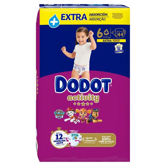 Si votre bébé a besoin d'un sommeil de conte de fées : long, profond et non perturbé, comptez sur Dodot Dry Baby, qui permet de dormir jusqu'à 100% sans fuites, grâce à sa barrière Stop Leak qui aide à prévenir les fuites à l'arrière. De plus, Dodot Baby Dry comprend 1) une triple couche absorbante, qui bloque instantanément le pipi et l'éloigne de la peau de votre bébé pour une bonne protection contre l'humidité, 2) des bandes flexibles, pour un ajustement confortable autour de la taille, 3) une barrière protectrice qui aide à prévenir les fuites sur les côtés. Tout comme vous, Dodot donne la priorité à la sécurité de votre bébé : Dodot Dry Baby est testé dermatologiquement.