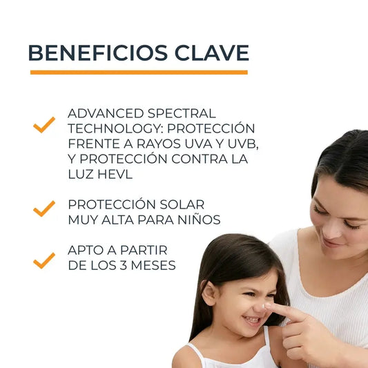 HELIOCARE 360° Pediatrics Mineral SPF50+ est un soin idéal pour les petits de la maison grâce à son action hydratante qui adoucit la peau sans laisser d'effet blanchissant. Ses filtres à large spectre fournissent également un film protecteur qui inhibe les dommages cutanés avec une action antioxydante sur les peaux sensibles et atopiques. Ce produit est très résistant à l'eau et au sable, ne pique pas les yeux et est testé sous contrôle pédiatrique, dermatologique et ophtalmologique.