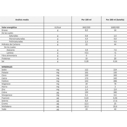 Cet aliment peut être utilisé comme seule source de nutriments, mais uniquement sous surveillance médicale stricte et au maximum 3 fois par jour. Le produit est prêt à être ouvert et consommé sans agitation préalable pour mélanger les composants. Il peut être administré au patient par l'intermédiaire d'une sonde d'alimentation. Une fois le récipient décapsulé, le liquide doit être avalé dans les 24 heures. Lorsqu'il n'est pas consommé, il doit être conservé au réfrigérateur.