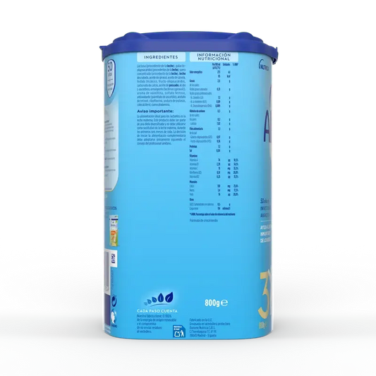 HIPP BIOLOGIC 3 aide les bébés à partir de 12 mois à grandir et à se développer. Il contient : -oméga-3 (DHA, ALA) : L'oméga-3 (ALA), acide gras essentiel, contribue au développement du cerveau et des cellules nerveuses. Les oméga-3 (DHA) contribuent au développement visuel des bébés. -Calcium : élément important de la croissance. Contribue au développement normal des os et des dents.