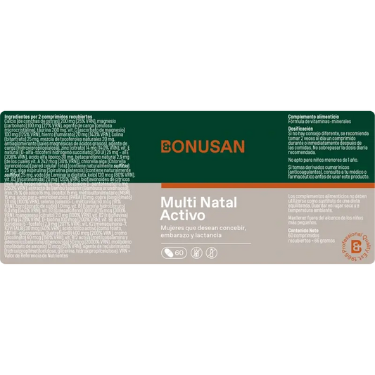 Fructo-oligosaccharides, citrate de magnésium (magnésium), citrate de calcium (calcium), bitartrate de choline, ascorbate de calcium (vitamine C), saccharomyces boulardii 2×1010 cfu/g, gluconate de zinc (zinc), bisglycinate de fer (fer), nicotinamide (vitamine B3), succinate de D-alpha-tocophérol (vitamine E), D-pantothénate de calcium (vitamine B5), cholécalciférol (vitamine D3), pyridoxal-5-phosphate (vitamine B6), chlorhydrate de thiamine (vitamine B1), acétate de rétinyle (vitamine A), riboflavine-5-phosphate (vitamine B2), méthylcobalamine (vitamine B12), cyanocobalamine, citrate de cuivre (cuivre), picolinate de chrome, méthylfolate de calcium (folate), sélénite de sodium, D-biotine (biotine), iodure de potassium, molybdate de sodium.