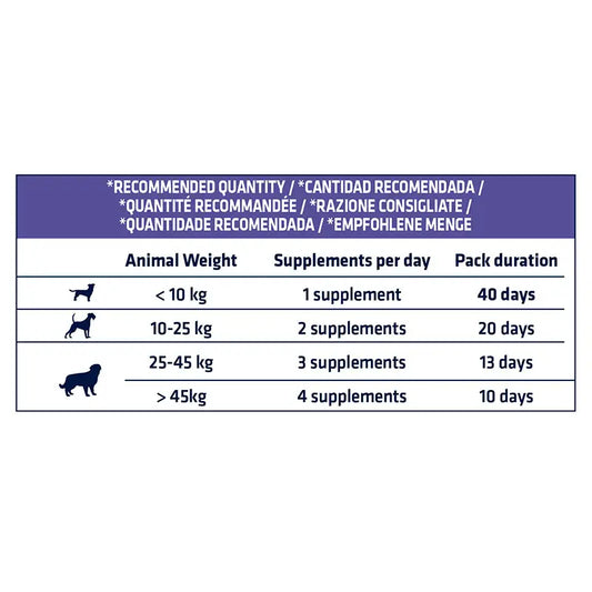 - Contribue au maintien de la mobilité articulaire et au bien-être des chiens.