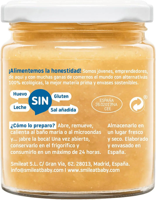 Smileat Tarrito Chicken with Rice est une purée qui apporte une grande quantité de nutriments à l'enfant. Sa consommation régulière apporte les nutriments du poulet, de certains légumes et du riz qui favorisent la croissance et le développement de l'enfant.